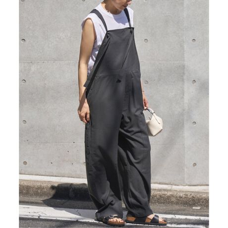 風合いのあるシルク素材を使用した、しなやかな着心地のワイドサロペット。