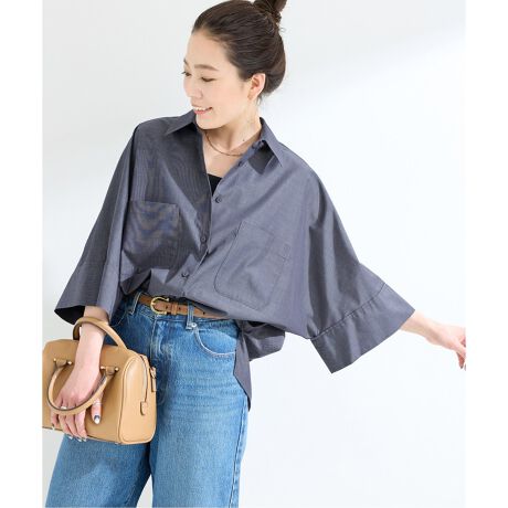 ウォッシャブル / ハケメポプリンワイドスリーブシャツ