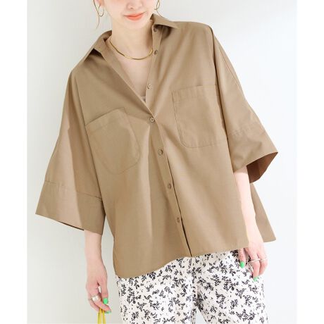 ウォッシャブル / ハケメポプリンワイドスリーブシャツ