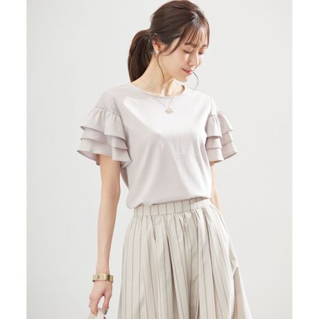 【スタッフコメント】▼身長cm|着用サイズ2 (通常着用サイズM)ティアード袖のシアー感が新しく涼しげな印象を与えてくれるカットソーです。伸縮性もあるので着心地もよくこの夏大活躍の間違いなしです!