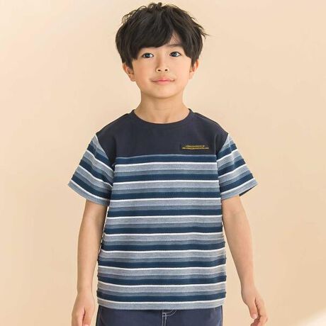 【お揃い】天竺xリップルボーダー切り替え半袖Tシャツ(80~130cm)
