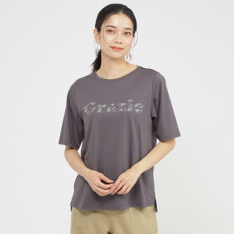 イタリア語でありがとうという意味の『Grazie』を、2色のラインストーンを使って表現しました。ロゴの内側をタイガー柄で表現し、きらきら光るシルバーのラインストーンが涼し気な印象の1枚です。