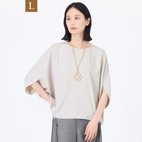 【L】【ウォッシャブル】【接触冷感】【UV】バックサテンジョーゼットプルオーバーブラウス