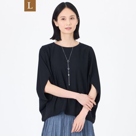 【L】【ウォッシャブル】【接触冷感】【UV】バックサテンジョーゼットプルオーバーブラウス