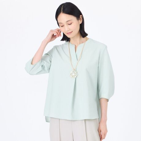 キーネックで襟あきが涼しげな印象のかぶりブラウスです。