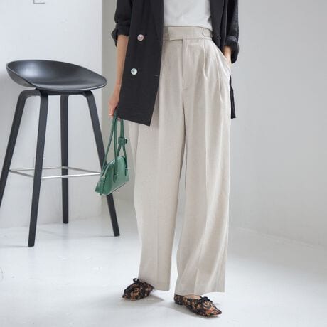 ナチュラルな風合いと快適な穿き心地で美シルエットが叶う、リネンライクワイドパンツ
