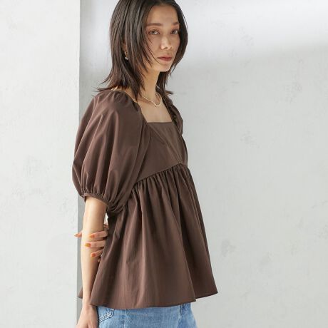 涼しげなスクエアネックとたっぷりのギャザーが印象的な、ペプラムシルエットのプルオーバーブラウス。