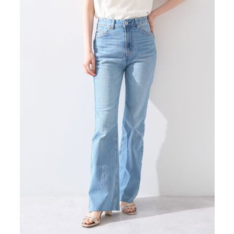 スタイルを綺麗に魅せるデニムフレアパンツ。高めに設定した膝の位置で脚長効果も嬉しいデザインです。ウエストに沿ったカーブベルトや、ジャストウエストの安心感ある履き心地も魅力的なポイント。お好みの長さに合わせてセルフカットが出来るのも嬉しい、汎用性抜群のおすすめアイテムです。透け感[なし]