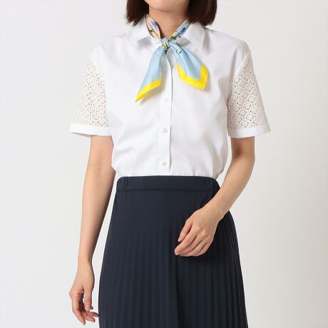 袖をレース生地で仕上げた涼し気で上品なデザインの半袖シャツ。