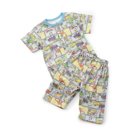WEB限定 前あきひんやりパジャマ 恐竜コミック柄_接触冷感_ジュニア対応