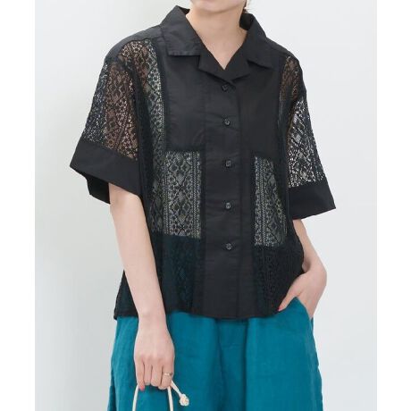 ◆ 透け感たっぷりな総レースのオープンカラーシャツ ◆