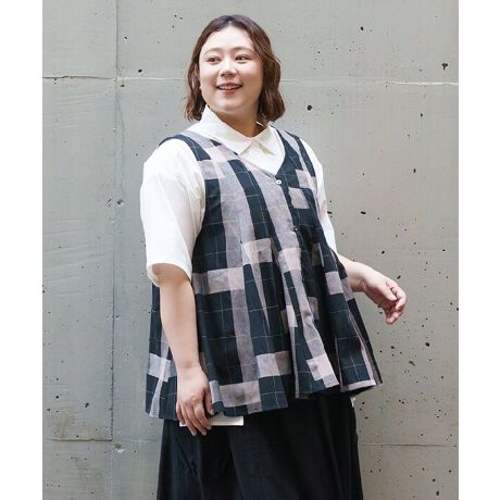 大きめチェックが可愛いノースリーブブラウスです。