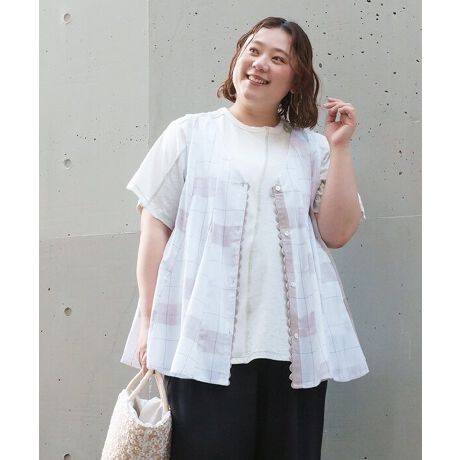 大きめチェックが可愛いノースリーブブラウスです。