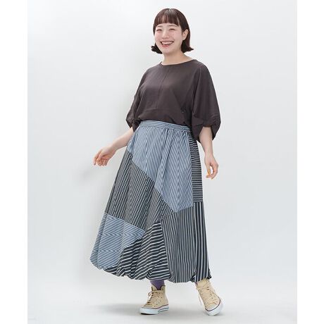 ストライプ3種とカットソーを組み合わせた欲張りスカートの登場です。