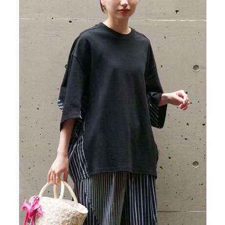 ストライプとカットソーを組み合わせたビッグTシャツの登場です。