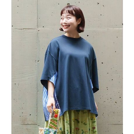 ストライプとカットソーを組み合わせたビッグTシャツの登場です。