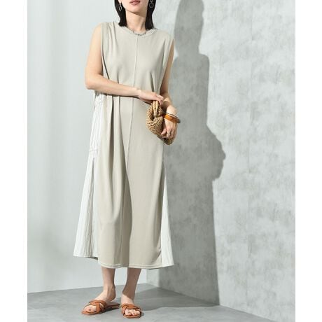 これからのシーズンに嬉しい接触冷感のメリット付き!着心地の良いキャラメルピケ素材を使用したカットワンピースの登場です。サイドに別布を施しメリハリと女性らしさをプラスしています。縦ラインが自然に広がっているデザインでスタイルアップ効果抜群です!また女性らしく見えるコンパクトなネックと、程よい着丈のフレアーシルエットで、品よく抜け感のある着こなしができるアイテムです。