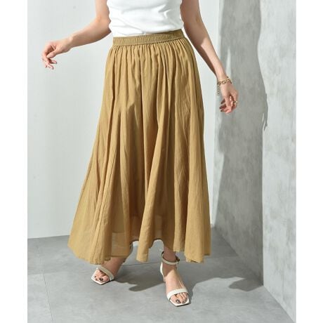 着こむほど風合いが良くなじむコットン素材を使用したギャザースカート。コットンは肌さわりが良く、吸湿性・通気性に優れているため、季節を問わず快適に履けるのが特徴。特に夏にはぴったりです。