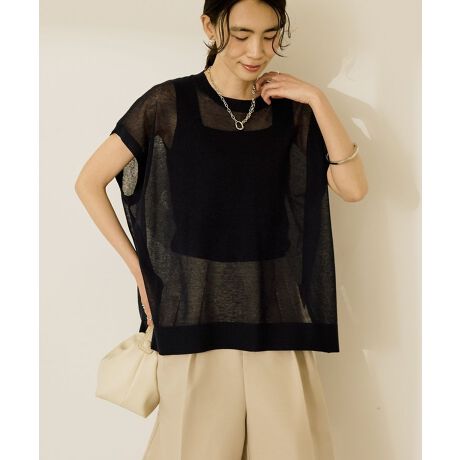 レイヤードスタイルに欠かせないシーズンムード漂うシアーニットトップス。程よく肩が隠れるフレンチスリーブで華奢見えするレディーライクな1枚です。繊細なニット素材ながらも、ご家庭での洗濯機で洗えるイージーケアなのも嬉しいポイント。前後差のある長めの丈感で幅広いボトムに合わせてコーディネートを楽しんでいただけます。