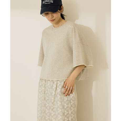 コットンミニ裏毛素材のナチュラルな雰囲気がカジュアルなスタイリングにぴったりなプルオーバー。ゆったりとしたフォルムにラフな5分丈袖を合わせたショート丈がポイント。袖先や裾のくるんと丸まったカットオフディテールも今年風です。脚長効果を発揮し、スタイルアップに繋げてくれる着回し力の高い一枚。