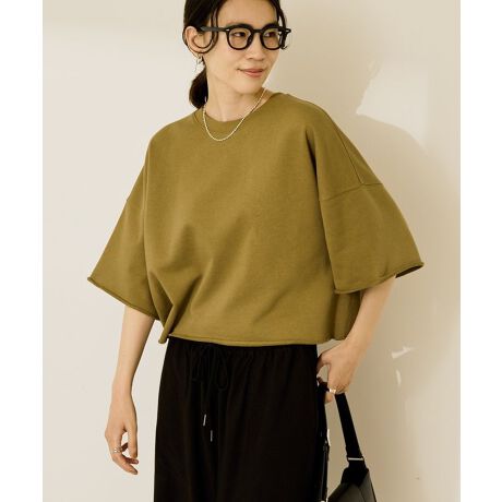 コットンミニ裏毛素材のナチュラルな雰囲気がカジュアルなスタイリングにぴったりなプルオーバー。ゆったりとしたフォルムにラフな5分丈袖を合わせたショート丈がポイント。袖先や裾のくるんと丸まったカットオフディテールも今年風です。脚長効果を発揮し、スタイルアップに繋げてくれる着回し力の高い一枚。