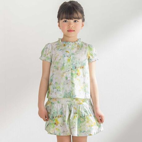 花柄フリルブラウス+キュロットパンツセットアップ(95~150cm)