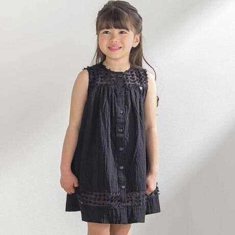 異素材組み合わせオーガンジー切り替えワンピース(95~160cm)
