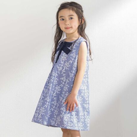 ギンガムチェック花柄プリントワンピース(95~150cm)