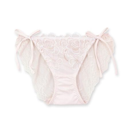 ラメ糸がきらめくフラワー刺繍レースが印象的なブラ&ショーツSETとお揃いの紐ショーツ