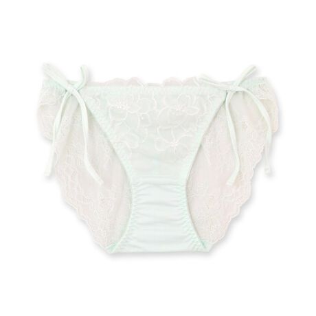 ラメ糸がきらめくフラワー刺繍レースが印象的なブラ&ショーツSETとお揃いの紐ショーツ