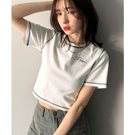 1枚で映えるロゴ刺繍×配色ステッチがポイント。