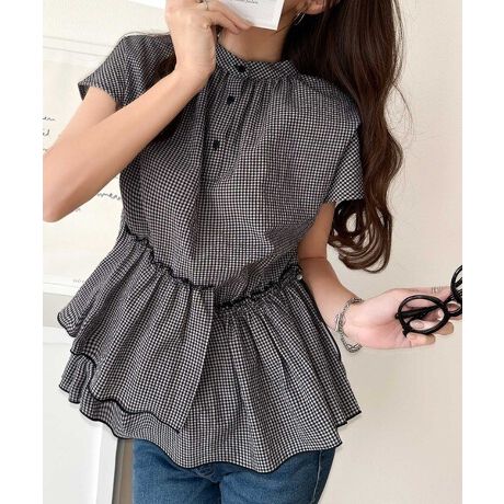 アシンメトリーティアードブラウス。