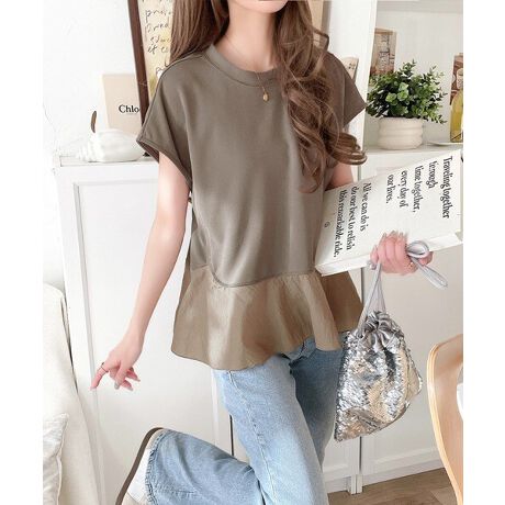上品見えのカットソー×裾シアーナイロンの異素材mix