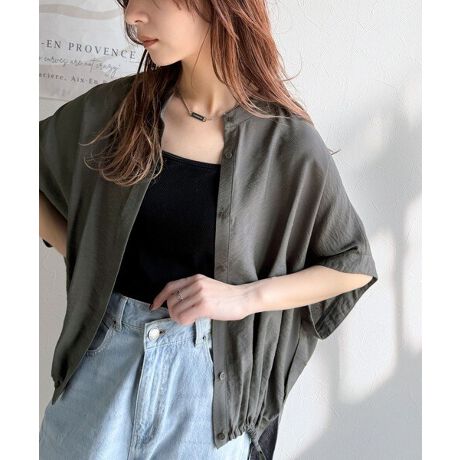 また、顔周りがスッキリ見えるバンドカラーで品のある印象に。