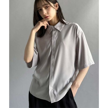 「Cropper Box Style Hidden Placket Shirt /比翼デザインショート丈シャツ」