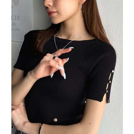 袖のボタンデザインがお洒落なリブニット♪
