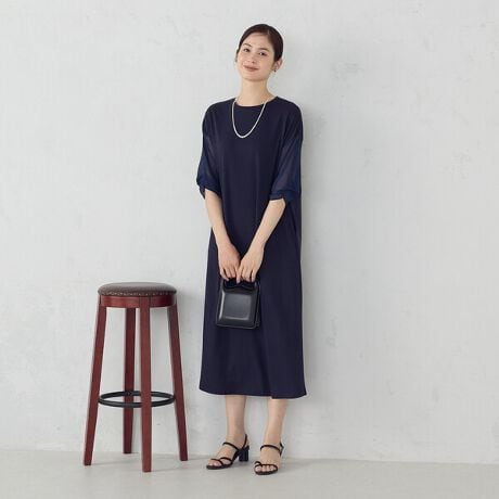 袖口をつまんでツイストさせた様なデザインがポイントのTワンピース。