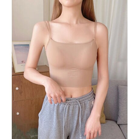 どんなトップスとも合わせやすい使い勝手抜群のクロップド丈ベアトップキャミソール。