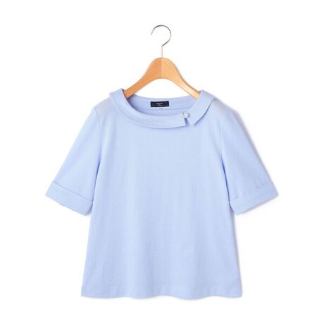 アシンメトリーな衿のフォルムが印象的なカットソー。共布のくるみボタンがアクセントとしても効いています。ベーシックな無地のデザインならではの取り入れやすさも魅力のアイテム。どことなくクラシカルな雰囲気があり、上品に着こなせます。ボトムス次第で普段使いはもちろん、ちょっとしたお出かけにも対応が可能です。