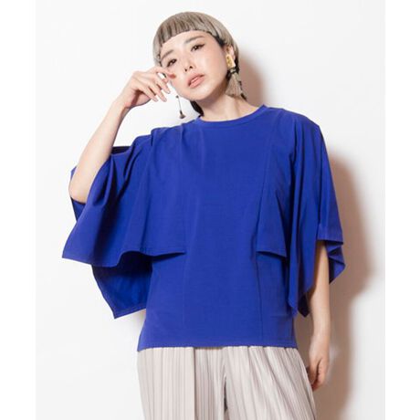ノースリーブの肩にケープを羽織ったようなモードなデザインTシャツ。