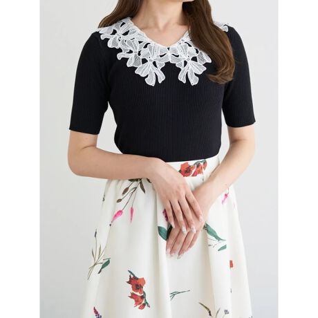 レース襟×伸縮性のあるリブニット生地