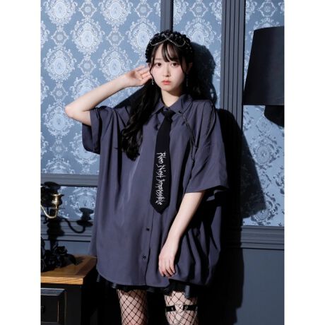 ネクタイやチェーン飾りがクールな表情を演出するビッグシャツ。