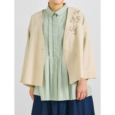 ボタニカル刺しゅうがアクセントになったジャケット風ブラウス。