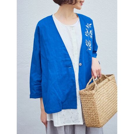 ボタニカル刺しゅうがアクセントになったジャケット風ブラウス。