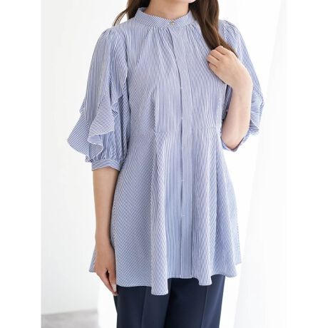 袖のラッフルフリルとフレアシルエットがフェミニンなムードを纏うチュニック。