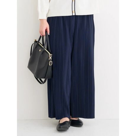 細やかなプリーツ素材の楽ちんキレイ見えパンツ。