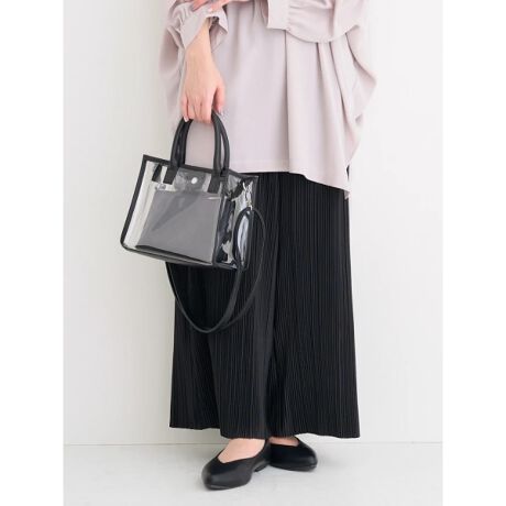細やかなプリーツ素材の楽ちんキレイ見えパンツ。