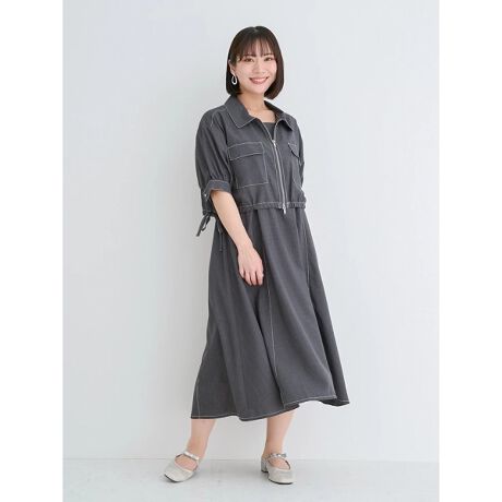 開け方によって印象の変化を楽しめるダブルジップのジャケットとキャミワンピースSET