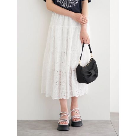エンブロイダリーレースで仕立てられた可憐なムードを纏うロングスカート。