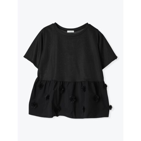 裾に立体的な花モチーフを散りばめた愛らしいトップス